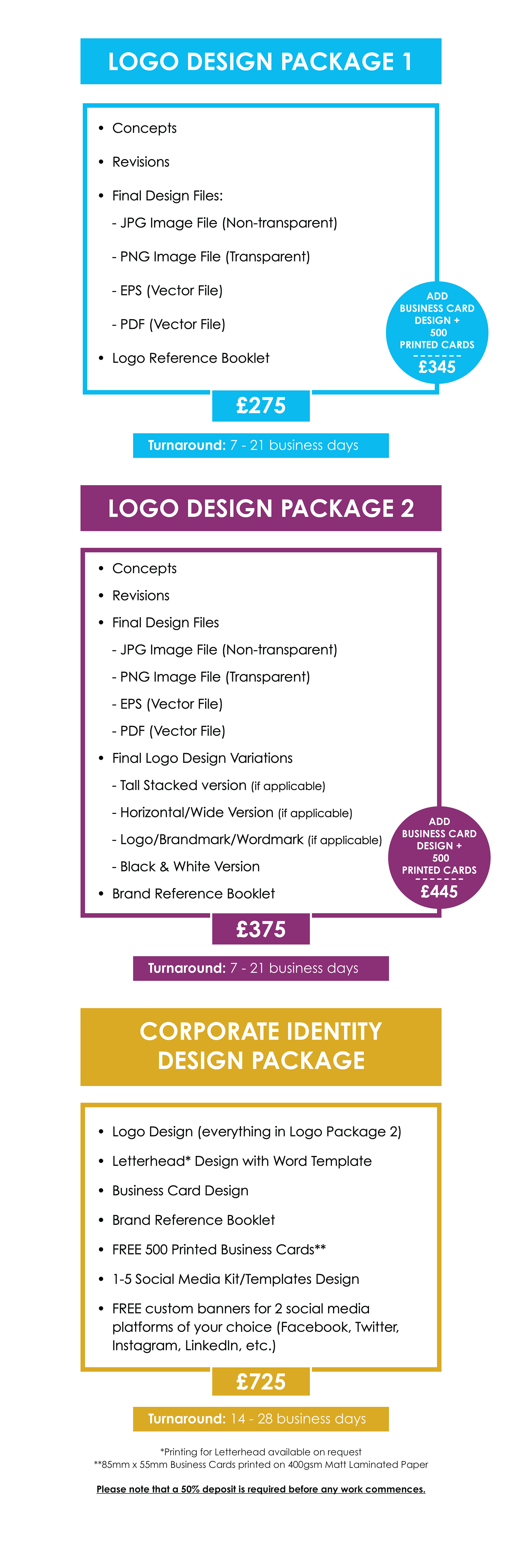 Below you can view our packages for logo design and branding.